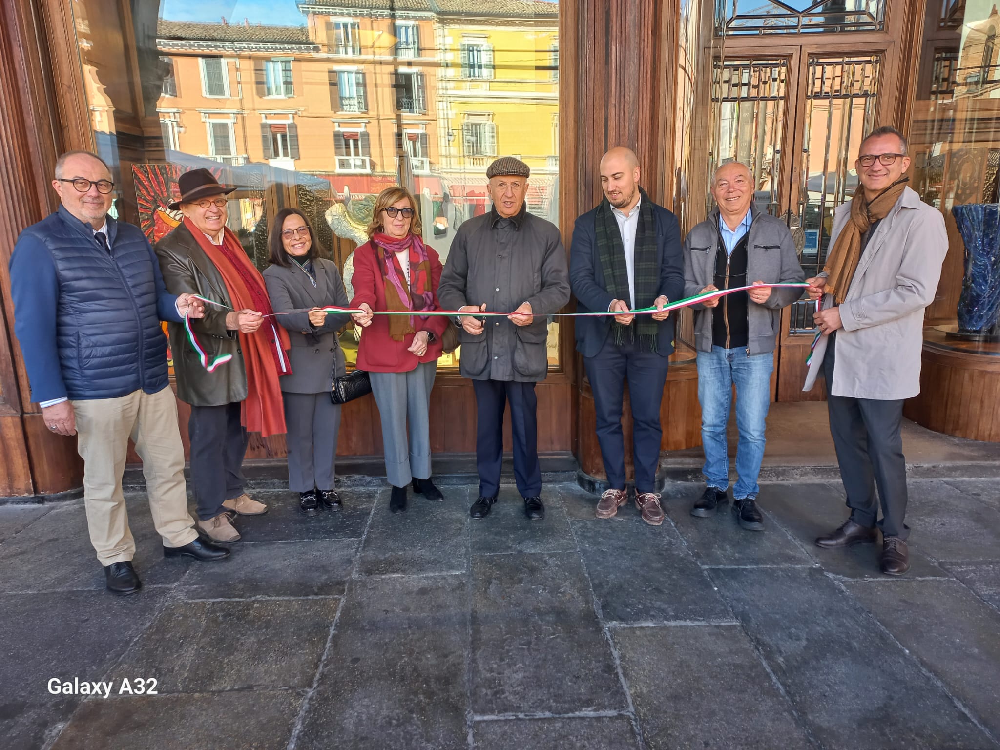 E’ stata inaugurata al Private Banking della Cassa ex negozio Bubani in piazza del Popolo la mostra sulla ‘Nike’ promossa da Silverio Gaudenzi e realizzata dall’artista mosaicista Verdiano Marzi nell'ambito delle iniziative per la Biennale del Mosaico. All’inaugurazione erano presenti il Presidente della Cassa di Ravenna Antonio Patuelli, la Presidente della Fondazione Cassa di Risparmio di Ravenna Mirella Falconi Mazzotti, il Vice Sindaco di Ravenna Eugenio Fusignani, l’Assessore alla Cultura Fabio Sbaraglia, il consigliere della Cassa e promotore della Mostra Francesca Fiorentini, il Direttore del Private Roberto Vicari, il committente Silverio Gaudenzi e l’artista Verdiano Marzi. Tra le opere del mosaicista, il trittico composto da figure mosaicate raffiguranti tre corpi femminili alati e acefali, liberamente ispirati al mito greco della Nike, divinità della Vittoria, è esposto ai Musei Byron e del Risorgimento. Le Nike sono atterrate a Ravenna volando da Parigi, dove furono create nel 2018: l’opera fu commissionata a Verdiano, residente in Francia, in occasione della ricorrenza del centenario della fine della prima guerra mondiale.Nella foto: il taglio del nastro: da sinistra Eugenio Fusignani, Verdiano Marzi, Francesca Fiorentini, Mirella Falconi Mazzotti, Antonio Patuelli, Fabio Sbaraglia, Roberto Vicari