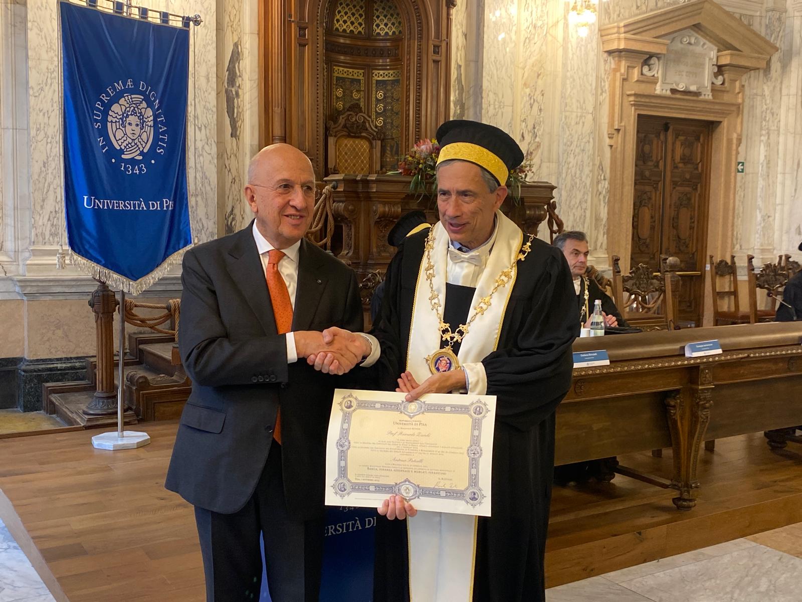 ringrazio vivamente per l’alto onore conferitomi dall’Università di Pisa, una delle più antiche e prestigiose d’Italia e d’Europa.