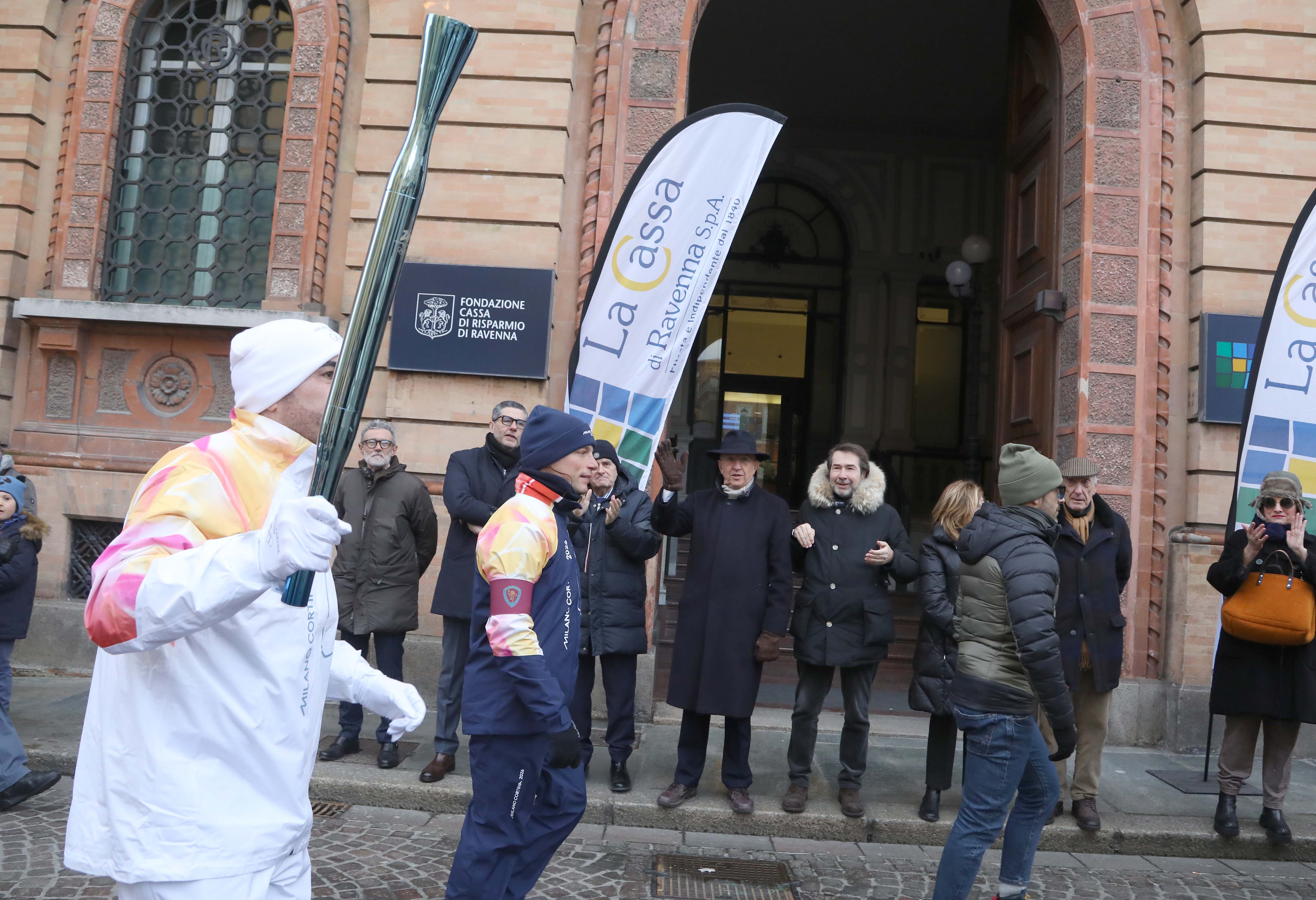 Il passaggio della Fiamma Olimpica davanti alla Cassa di Ravenna