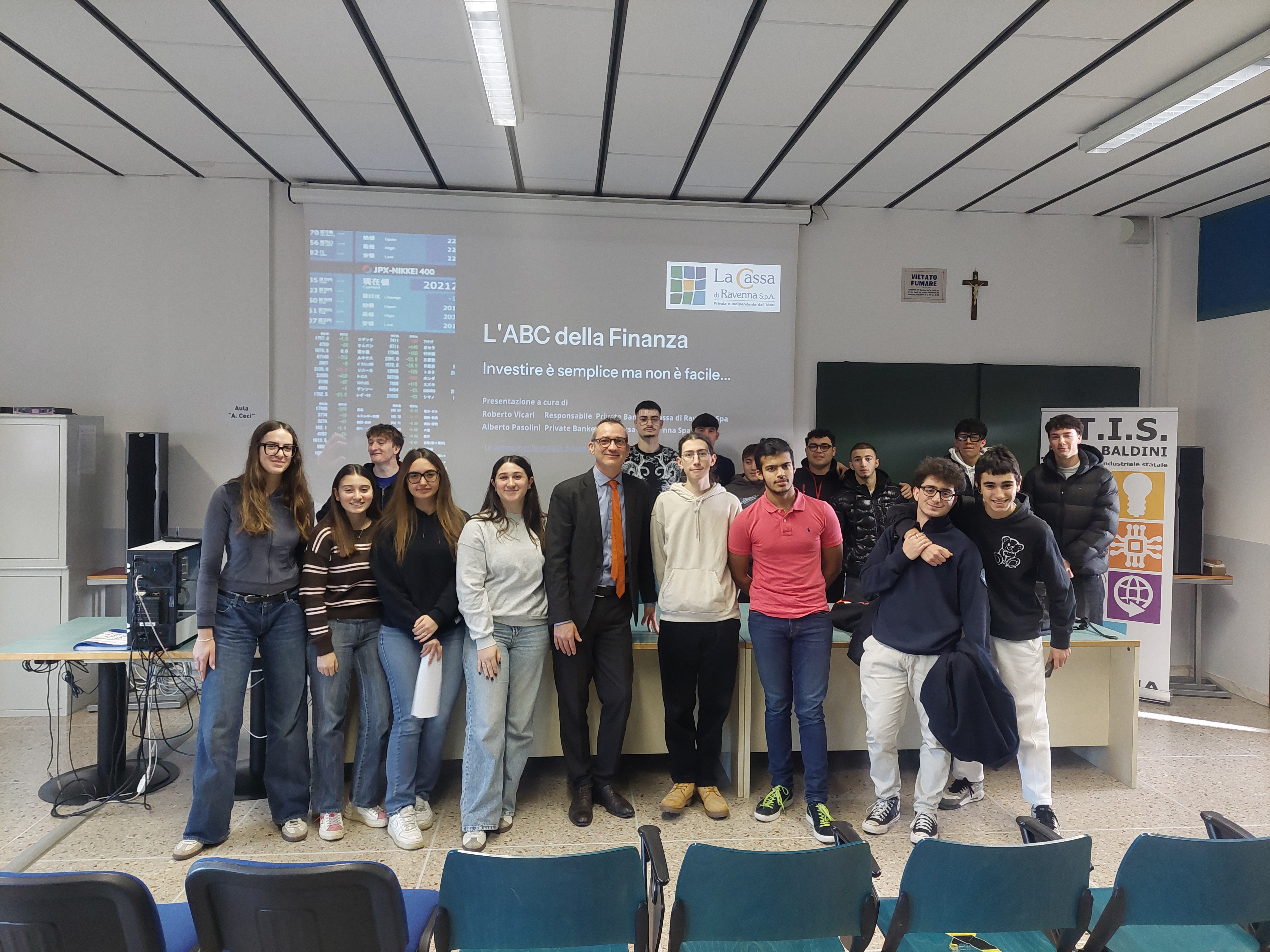 L’Istituto Tecnico Industriale Statale ‘Nullo Baldini’ di Ravenna è uno degli istituti romagnoli più attenti e sensibili all’educazione finanziaria: e per approfondirne i temi con gli studenti e le studentesse delle sette classi IV il dirigente scolastico Antonio Grimaldi ha programmato una serie di incontri con l’esperto della Cassa di Ravenna Roberto Vicari, che ha tenuto una serie di lezioni sul tema ‘L’ABC della Finanza: investire è semplice ma non è facile’. Ragazze e ragazzi sono stati attentissimi, sia per l’ampiezza e il dettaglio delle lezioni, che vertono su azioni, obbligazioni, fondi, criptovalute, piani di accumulo di capitale e altri strumenti di risparmio e investimento, sia perché a questa età è facile confrontarsi già con i primi bilanci e con la necessità di pianificare e programmare le spese, come gli studi, i viaggi, l’auto o gli stessi investimenti finanziari. Da qui le numerose domande ed il confronto interessante e vivace tra studentesse e studenti ed il nostro esperto. Gli incontri hanno visto coinvolte le classi IV ACM, IV ACN, IV AEN,, IV BEL, IV AIN, IVBCM-CN e IV BIN con i docenti Mazzavillani, Cortesi, Ragazzini, Ricci, Cavezzali, Bendandi, Riccioni, Tummino, Varoli, Buresta, Casadei e Baccarini. L’esperienza di Vicari, responsabile del Private Banking della Cassa in piazza del Popolo a Ravenna, e l’interesse dei giovani hanno garantito il pieno successo all’iniziativa, che si inserisce nell’ampio spettro di offerte di educazione finanziaria proposto dalla Cassa di Ravenna, direttamente con i propri esperti oppure in collaborazione con la Fondazione per l’educazione finanziaria ed al risparmio (Feduf), promossa dall'Associazione bancaria italiana (Abi). Quest’anno sono complessivamente oltre cento le classi coinvolte e diverse migliaia gli studenti e le studentesse chiamati a lezione nell'ambito dei programmi della Cassa di Ravenna, della Banca di Imola e del Banco di Lucca e del Tirreno. Come noto, tra l’altro, l’educazione finanziaria è diventata materia di insegnamento obbligatoria con la conversione in legge del ‘Decreto Capitali’: ma sia l’Itis di Ravenna sia Il Gruppo Bancario Cassa di Ravenna l’hanno già da anni promossa, con lungimiranza, ben prima che diventasse legge.